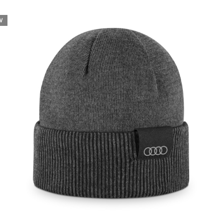 Versatile and sustainable: the Audi reversible knitted hat is made of 100% recycled material. Details: - Reversible knitted hat in 2 colours - Can be worn as a classic hat (turned up) or as a beanie - One-size-fits-all Branding: - Audi Rings label on the edge of the turn-up Material: - 100% polyester (recycled) Care instructions: - Machine wash 30degrees C - Do not tumble dry Colour: - Black/grey