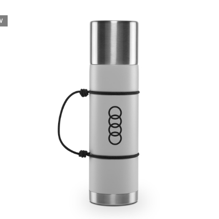 Perfect for on the go: with the insulating bottle from Audi, your drink will always have the right temperature. Details: - Double-walled, vacuum-insulated stainless steel bottle with black strap - Bottle keeps your drink warm for up to 24 hours and cold for up to 36 hours - Cap can be used as a drinking cup - Co-branding with Mizu Branding: - Black Audi rings print Volume: - 680 ml Material: - Stainless steel, nylon, silicone care: - Hand wash recommended Colour: - Grey
